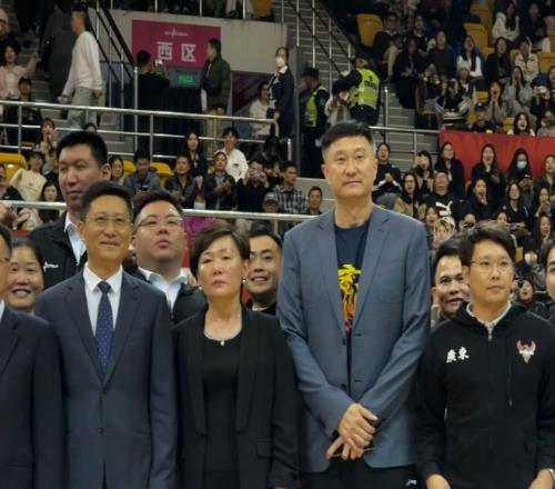 广东女篮功勋老将沈怡和于东领取总冠军戒指,并领取退役球衣。