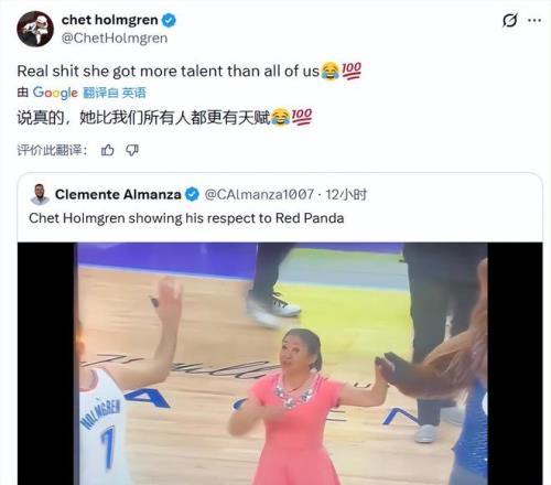 霍姆格伦在今天中场休息的时候特意与我们的牛大妈击掌打了个招呼,而在比赛结束后霍姆格伦又在个人社交媒体上转发了自己和牛大妈的击掌视频后发文表示:说真的,她比我们所有人都更有天赋。牛大妈也是我们中国杂技文化输出的重要一员。