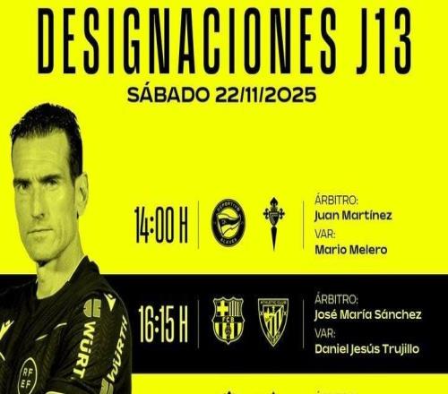 北京时间11月21日,西甲官方公布了联赛第13轮第1比赛日的裁判名单,何塞-桑切斯执法巴萨vs毕尔巴鄂竞技。阿拉维...